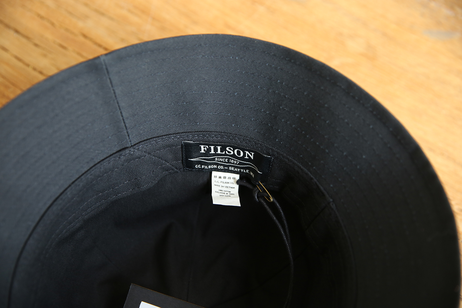 모자 표면은 왁스처리 된 코튼으로 제작되어 약간의 방수기능을 담당하며 내부에는 튼튼한 캔버스 원단의 라이닝이
