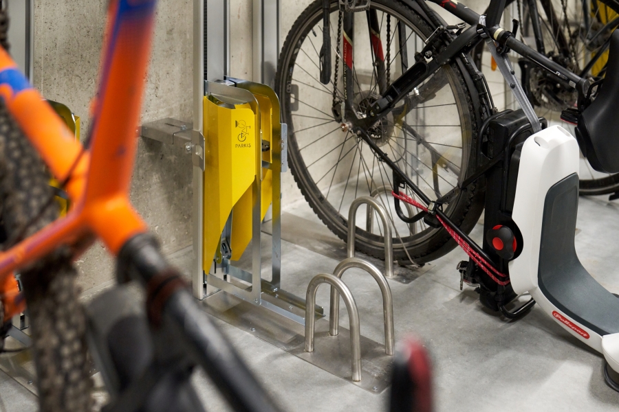 PARKIS was inspired by the need to find a space-saving bike storage solution that requires no or little physical effort.