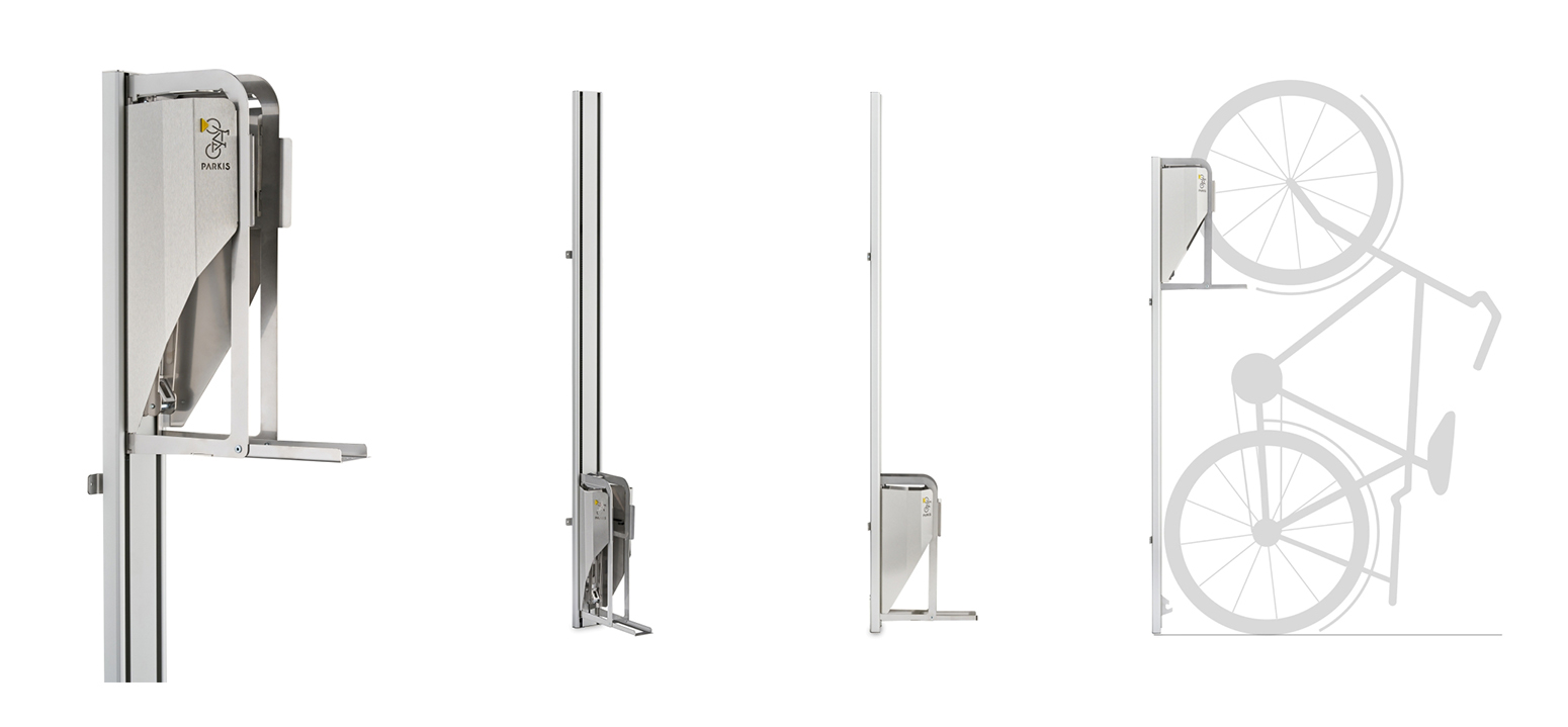 PARKIS was inspired by the need to find a space-saving bike storage solution that requires no or little physical effort.